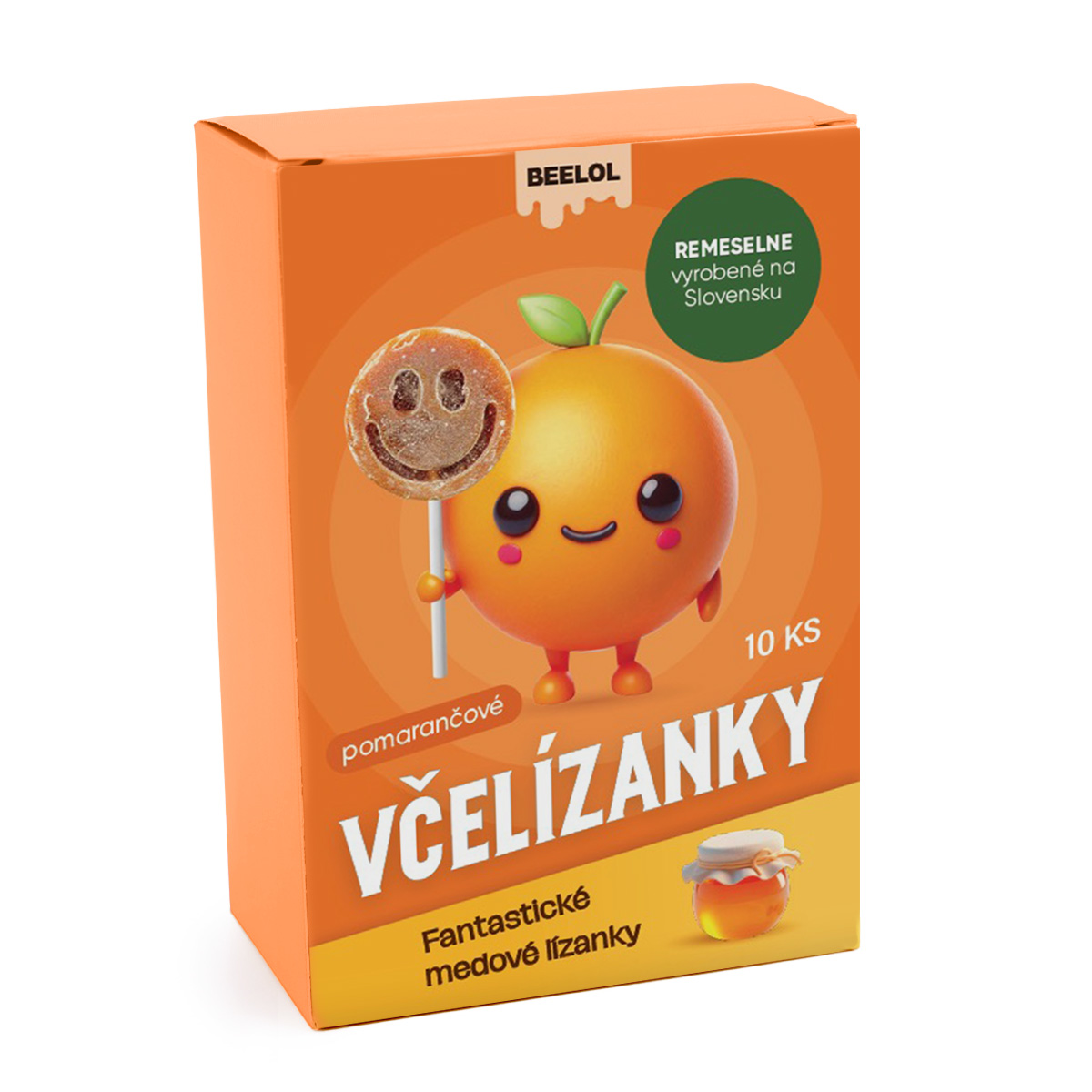 Včelízanky – pomarančové lízanky 10ks ponúkame aj v takomto menšom praktickom balení. Jemná chuť medu od slovenských včelárov dodáva lízankám príjemnú sladkosť a prirodzenú, zlatohnedú farbu. Remeselne ich vyrábame v Trnave už od roku 2010. Exotická chuť šťavnatého pomaranča vás razom prenesie do letných dovolenkových destinácií.